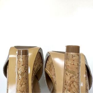 5" covered shiny cork heel with 1" platform.