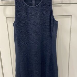 Dianne Von Furstenberg Teyla in deep night navy blue midi dress with hidden back zipper and hook and eye closure, racer back style top, body hugging silhouette, Rouched style pattern with side panels. Size 4. There is stretch in the material. Excellent pre owned condition. Please see photos, measurements are for reference only. Reasonable offers welcome!