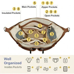Diaper Bag Tote By miss fong Baby Bag Leather Diaper Bag With 11 pocket spacious organizer.