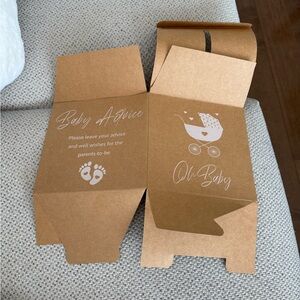 This set includes a kraft paper box for your diaper raffle tickets and 'Advice and Wishes' cards for parents-to-be.