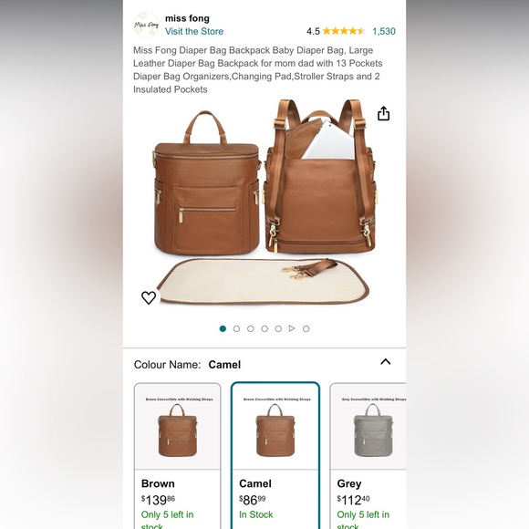 Camel colored diaper bag backpack in excellent used condition, just missing change pad