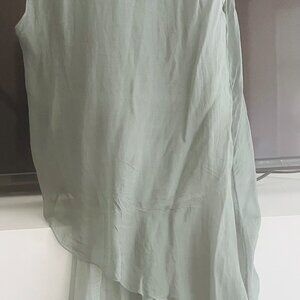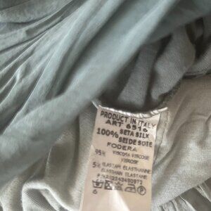Flowing pale green silk with comfortable cotton jersey lining. Forgiving sizing.