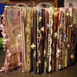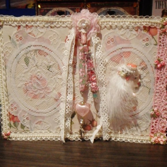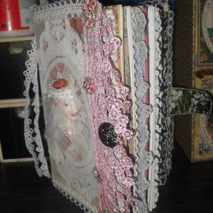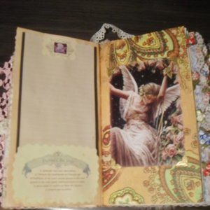 Fait a la main Unique avec dentelle vintage ,signet et pochette theme les Anges 45 pages pour ecrire