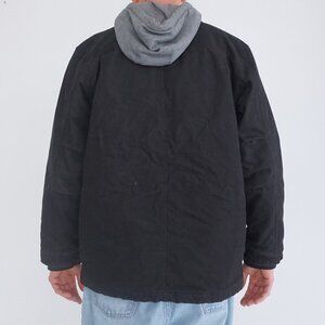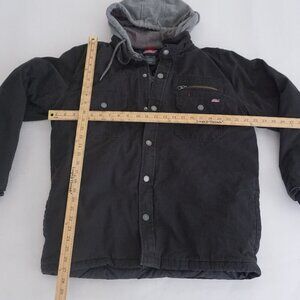 Dickies Black Cotton Quilted Lined Built-In Gray Hoodie Zip Snap Button Jacket L
