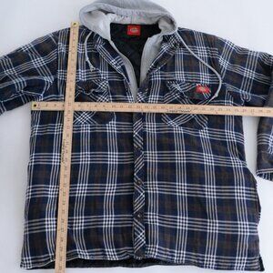 Dickies Blue White Checker Plaid Zip Up Built-in Hoodie Quilt Lined Shacket XL