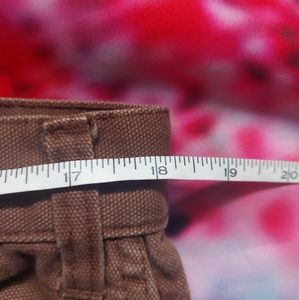 Great pre-owned condition,100% cotton double knee carpenter pants in a brown color with red dickies patch.Tag says 40x32 but measure 36 inch waist,32 inch inseam