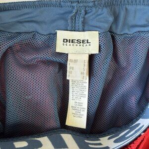 Diesel Beachwear Barrely Swim Trunks Mens S Red Logo Waist Drawstring Pockets