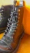 Sleek black leather boots. Lace-up design. Durable sole.