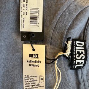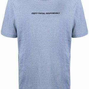 Blu cotton Enjoy Diesel Responsibly-embroidered T-shirt from DIESEL featuring jersey knit, embroidered slogan, round neck, short sleeves and straight hem.