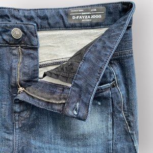 Diesel Fayza-Ne boyfriend jogg jeans size 27. Made out of thick jogg fabric with a little bit of stretch. Dark wash with paint spots, wrinkles and abrasion effects. Crisp feeling but it's part of the design. In excellent condition. Please refer to pictures for more details.