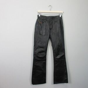 Diesel Genuine Leather Pants Womens Bootcut 26 Black Moto Low Rise Vtg Y2k 644