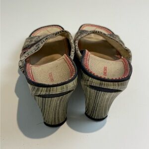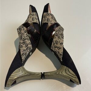 Cute Diesel slip heels. Made w leather and denim detail. Size 6. Good condition. Great for any occasion. Heel is 3.74 in. Heels are light so easy to walk in. Heel has mood pattern. Edgy and cute. Box not included.