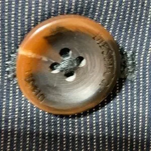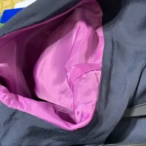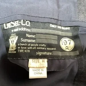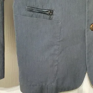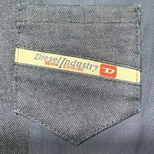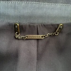 Diesel Industry denim division, ladies pinstripes and demin jacket, size medium, two open front pockets with a small zipper pocket above the right front pocket and two inside pockets. See pictures of purple lining inside the sleeves. Comes from smoke and pet free home.