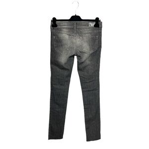 Very good condition. Raw hem. Distressed style with whiskering / fading. No rips or stains.