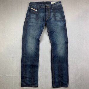 Diesel Mens Pants 30 Blue Jeans Deetak Slim Straight Dark Wash Rigid Italy 30x32