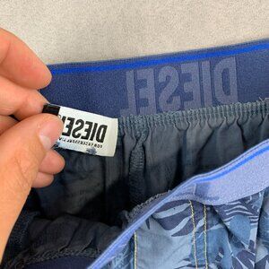 Diesel Mens Shorts Large Blue Floral Boxer Elastic Waist Hawaiian Beach Summer