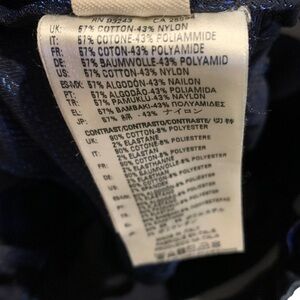 Two slanted pockets with zippers on the sides of the skirt. The skirt has elasticized pull tabs at the bottom