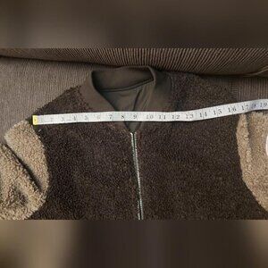 --> Size L, elastic cuffs at sleeves, elastic hem and elastic detail on collar line, 2 side pockets with snaps, 2 inside pockets, logo patch on sleeve and back.