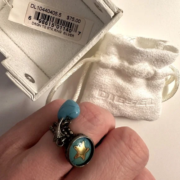 Diesel silver ring featuring a star design with a blue accent. Stylish and unique. Used but in excellent condition Size 6