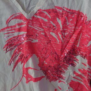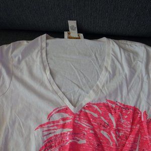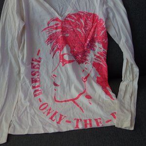 Diesel White V-Neck T-Shirt with Pink Only the Brave Design Size S