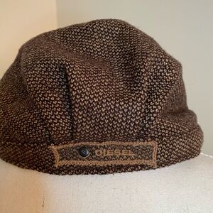 Diesel Women Brown Wool blend Tweed Newsboy Preppy Cap Hat- S/M