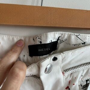 Diesel Women’s Paint Splatter Slim Fit White Pants Size 27