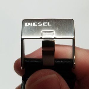 Diesel wristwatch, made of stainless steel, with a black dial, and matching silver hour markers and hands, which comes on the original leather strap, and with the branded “Diesel” buckle.