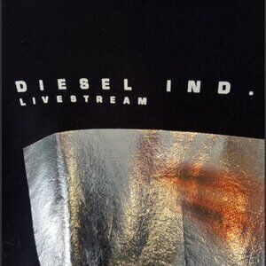 On the back of the sweatshirt, a beautiful shiny silver, gold, and ochre image with the Diesel Ind. Livestream logo above the image.