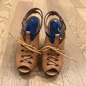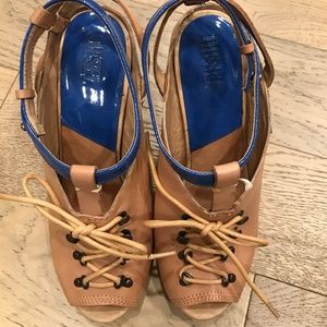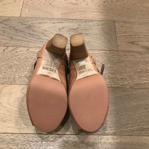 Diesel leather, dusty rose, peep toe pumps with laces. Size 39 (8.5)