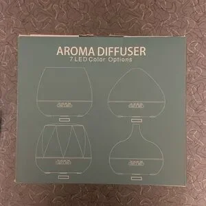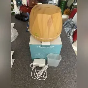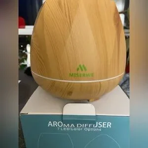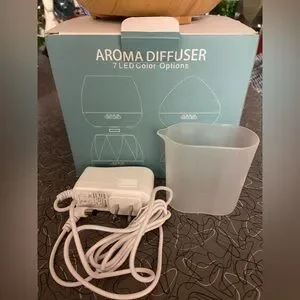 NWOT wood coloured diffuser with led lights that can be turned on or off or changed colour. Adjustable timer with automatic shut off.