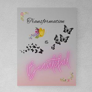 Canvas on wood frame. 1 inch deep frame. Lightweight, easy to hang on nail or thumb tack. Great gift for a friend or for yourself! We have all been through a lot but the future is bright! Everyday is a new day and everyday we are someone new! Leave the past where it belongs, IN THE PAST! You are beautiful! You are loved. I created this piece from my heart and have infused it with great energy and love! Enjoy!
