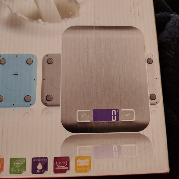 Sleek digital kitchen scale with a clear LCD display. Perfect for precise measurements.