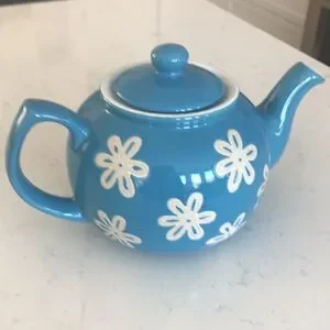 Pretty blue flower Tea Pot . No chips - clean interior . Measures approximately 5 inches tall and 9 inches from handle to spout . Lovely piece