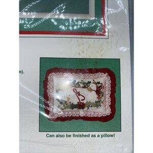 Note: opened package. Includes embroidery thread, design printed in full color on 14 count white Aida and instructions. Needle is missing.