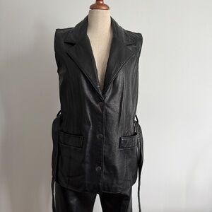 Dimitri - Black Leather Belted Vest - Snap closure - Belted - Lined - 2 pockets - Excellent pre-owned condition