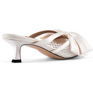 Diolyvion Women White Mesh Bow Mules Pointed Toe Kitten Heel Slip on Sandals