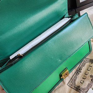 - Sliding chain strap can be worn as a shoulder strap with 38 cm drop or can be worn as a top handle with 22 cm drop.