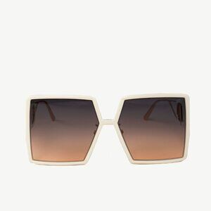 These 30Montaigne SU sunglasses from Dior are crafted in a mix of White acetate and gold-tone hardware, and feature oversized geometric square-shape frames, gradient pink-tinted lenses, nosepads, cutout arms, and are finished with cutout "CD" signatures on the temples.