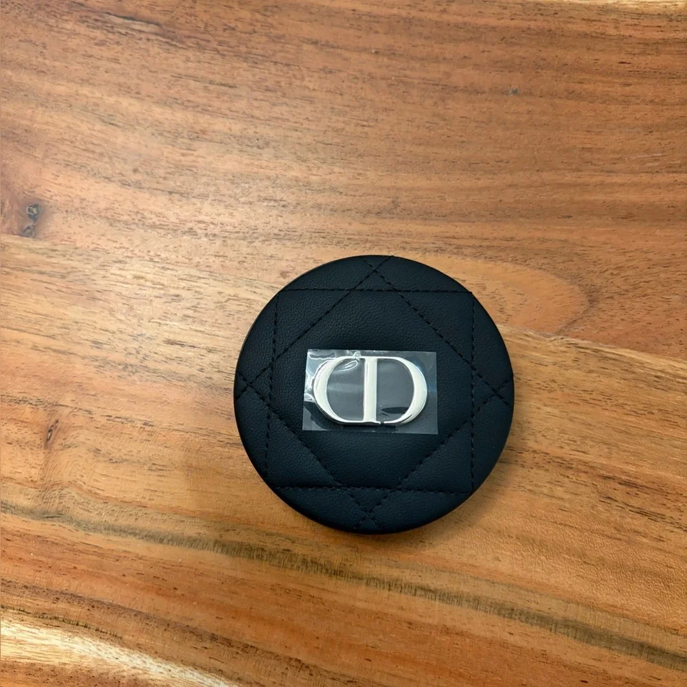 Chic Dior Beauty gift with purchase mirror compact in quilted black. Features a silver logo accent. Ideal for a touch of luxury.