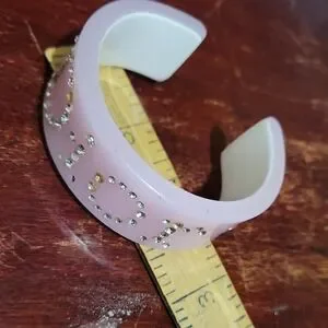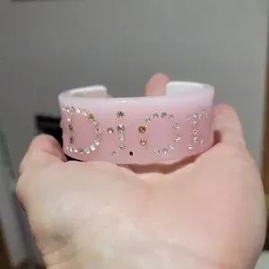 Chic light pink retired cuff bracelet with sparkling rhinestones from DIOR.