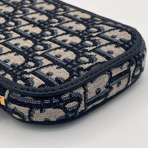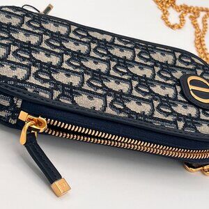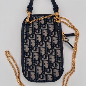 Dior Montaigne Phone Holder with Chain Strap - Blue Oblique Jacquard