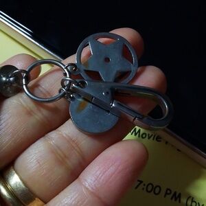 Stylish pink and blue keychain charm with metal accents. Perfect for adding flair to your keys.