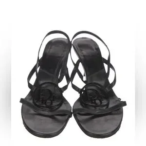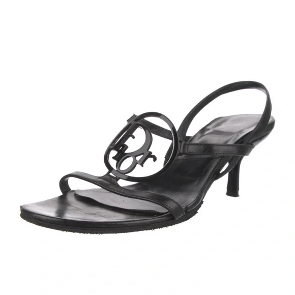 Authentic vintage Dior logo sling back sandal in black leather. 2 inch heel, size US 8. Very good condition.