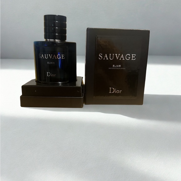 Dior Sauvage Elixir in a striking black bottle. Intense and sophisticated scent.