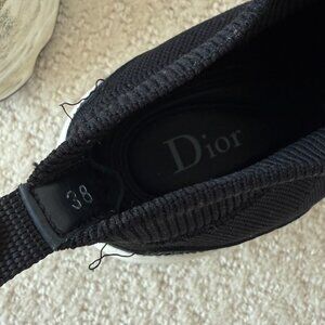 Brand: Christian Dior, Technical Knit Sock Sneaker, Size: 38EU (8 US), Color: Black, Condition: Worn but in very good condition, Material: Technical knit, Leather and rubber.