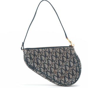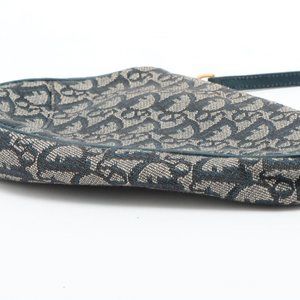 Dior Trotter Saddle Bag Canvas Mini Hand Bag Navy Blue