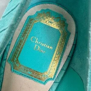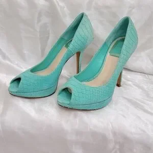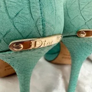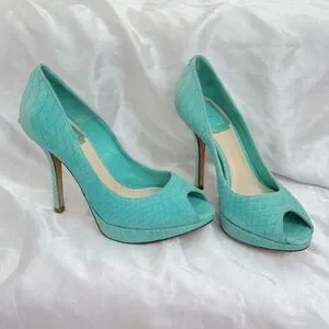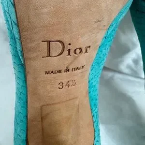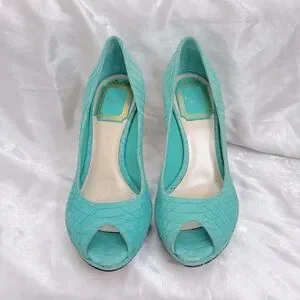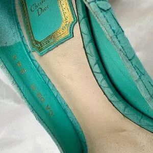 Dior Turquoise Python Embossed Leather Peep-Toe Pumps
