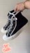 Adorable high top sneakers, crafted of black canvas and white rubber trim with logo laces. Love these!