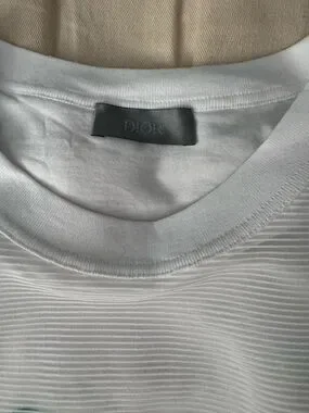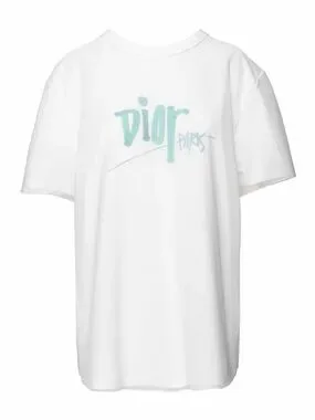 Relaxed crew neck tee. Center mint Dior script graphic. Clean, understated style. Versatile wardrobe piece. Authentic.