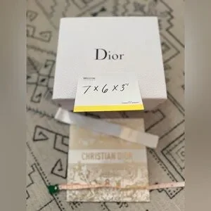 Sophisticated Dior box with card and sleek white ribbon. Ideal for gifting.